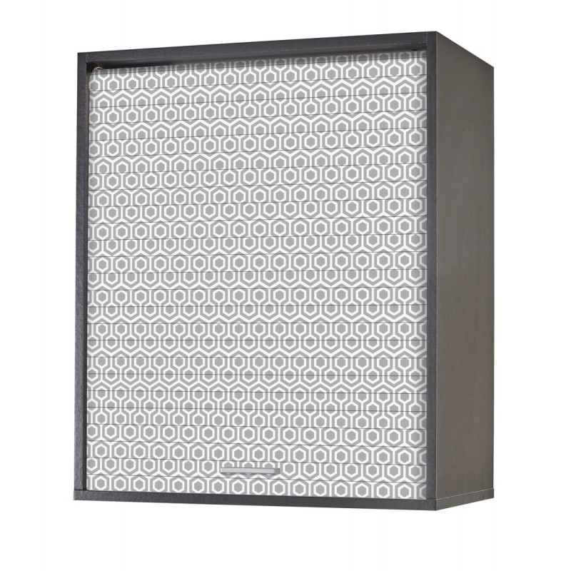 Meuble Elément Haut de Cuisine. Coloris Noir + Rideau Imprimé (plusieurs motifs). Largeur 60 cm Hauteur 72 cm Profondeur 35 cm. 2 Tablettes. Fermeture par 1 Rideau. A suspendre ou à poser. Meuble éco-conçu. Fabriqué en France. Livraison sous 7 jours offerte.
