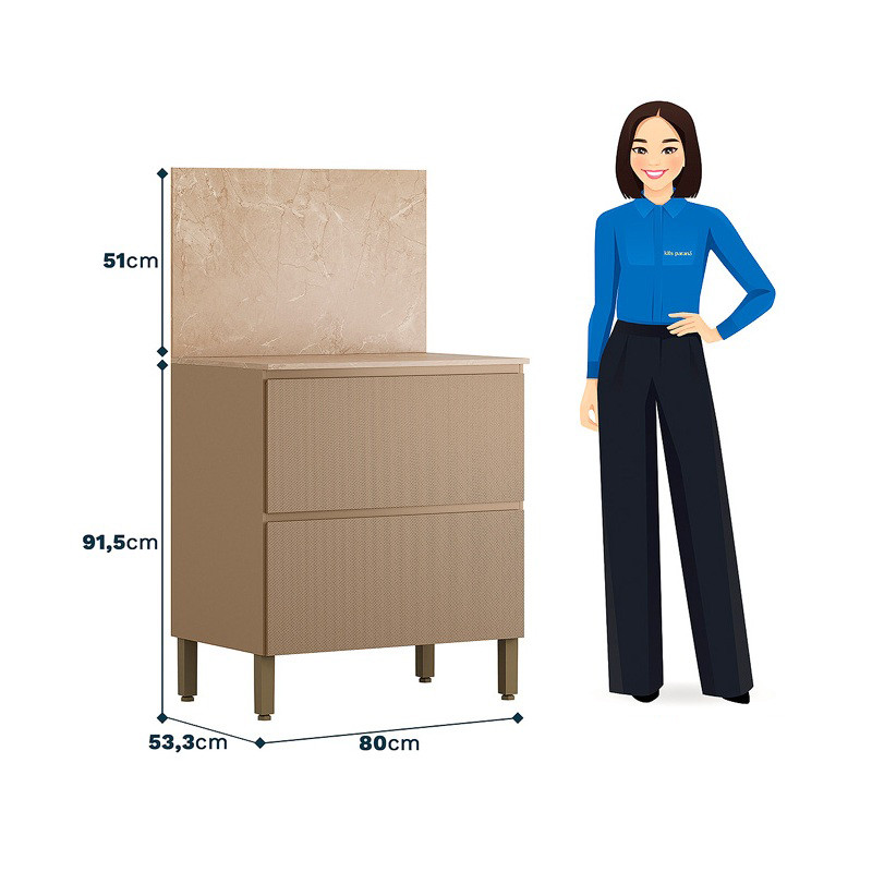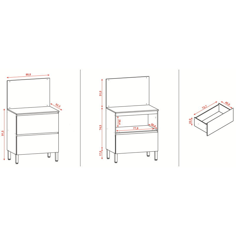 - Plan de travail : Largeur 80 cm Profondeur 53.3 cm