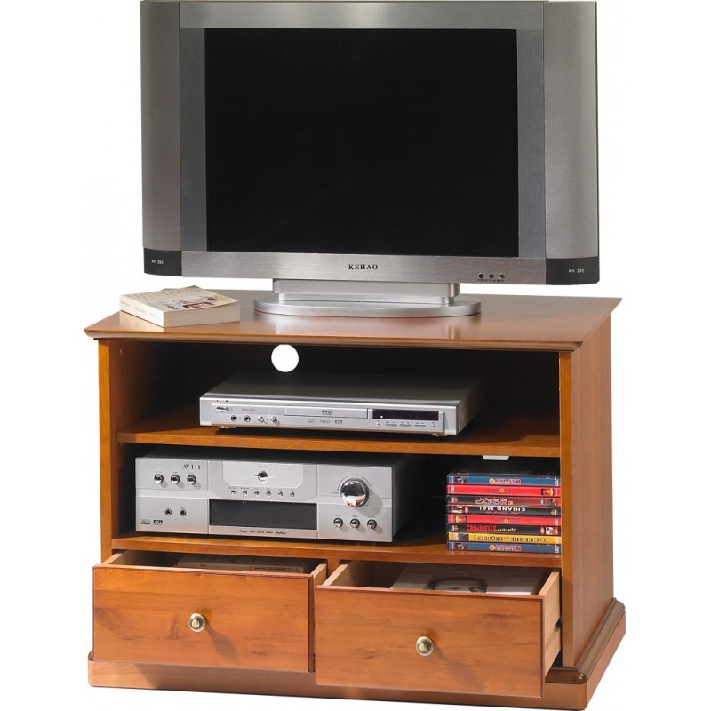 Meuble TV Hifi Plaqué Merisier. Style Louis Philippe, sur Roulettes. 2 tiroirs 2 niches. Largeur 82.4 cm Hauteur 58.7 cm Profondeur 46.5 cm. Fabriqué en France. Façades de Tiroirs et Socle en Aulne Massif Teinté Merisier. Livraison sous une semaine offerte.