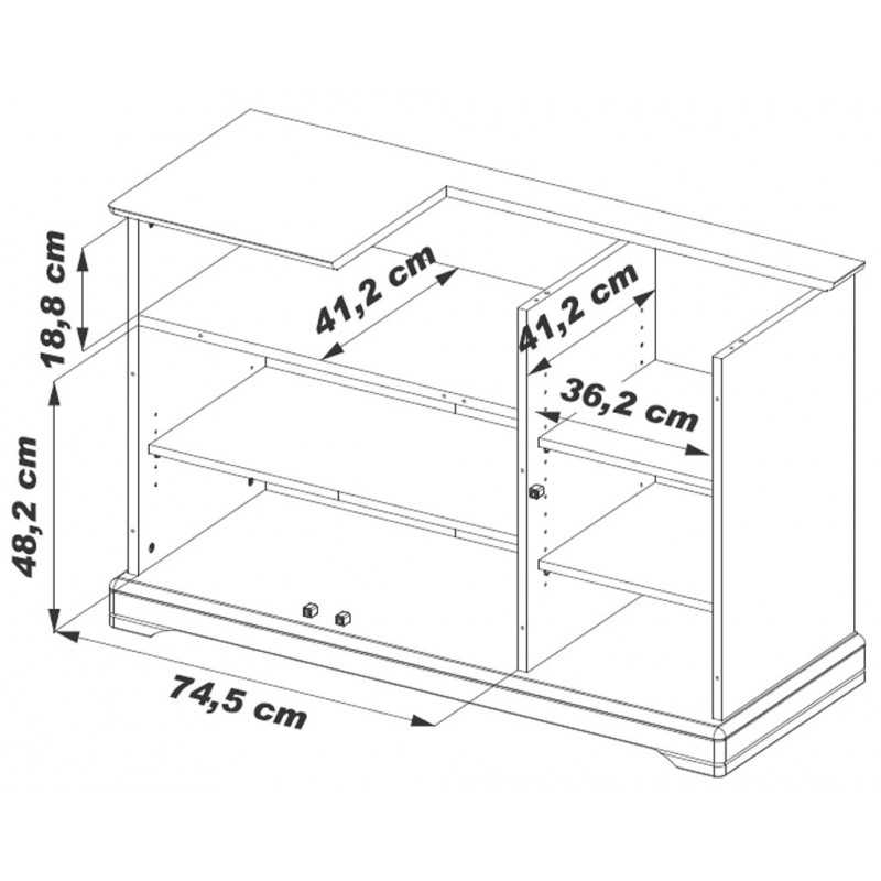 Partie basse : Largeur 74,5 cm Hauteur 48,2 cm Profondeur 41,2 cm
