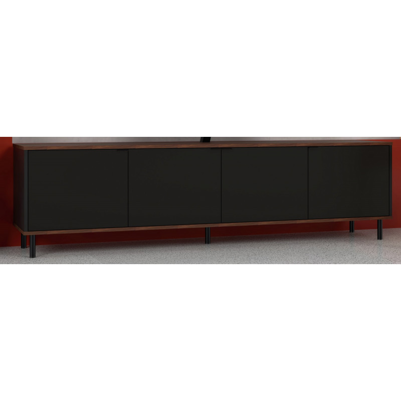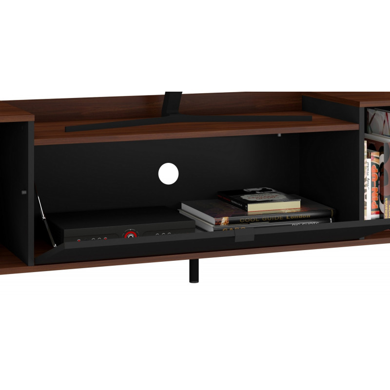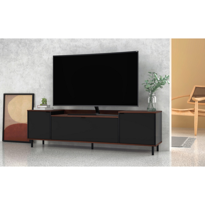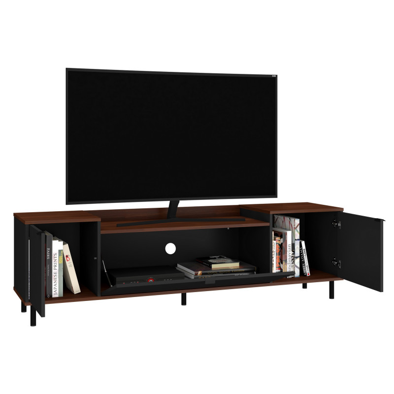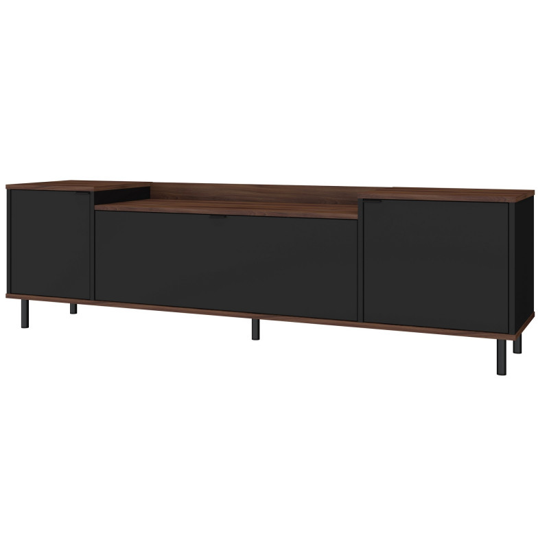Meuble TV Bar 70 Pouces Maxi 2 Portes 1 Abattant Imitation Châtaignier et Noir Pieds Métal