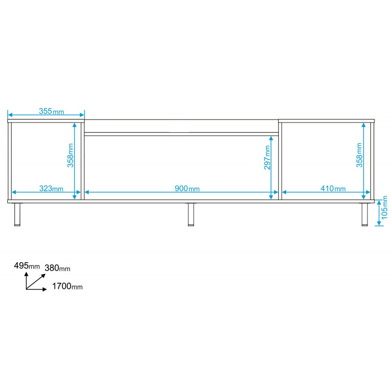 Longueur 170 cm Hauteur 49.5 cm Profondeur 38 cm