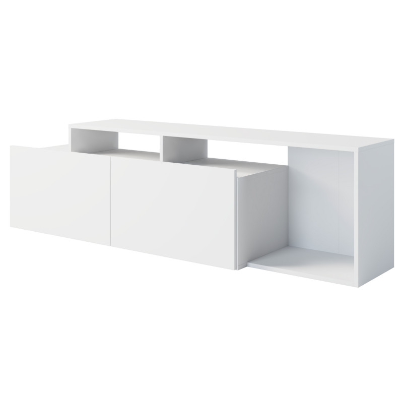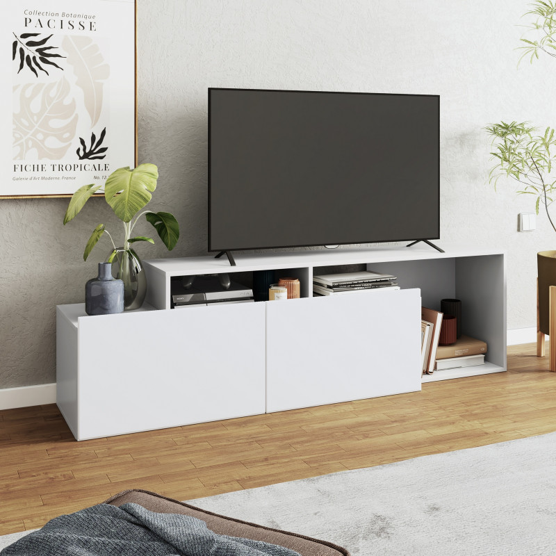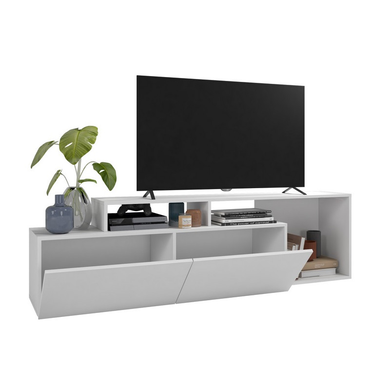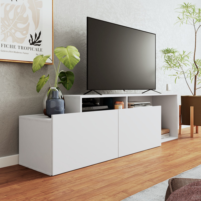 Meuble TV 50 Pouces Maxi 2 portes abattantes 6 Niches Blanc