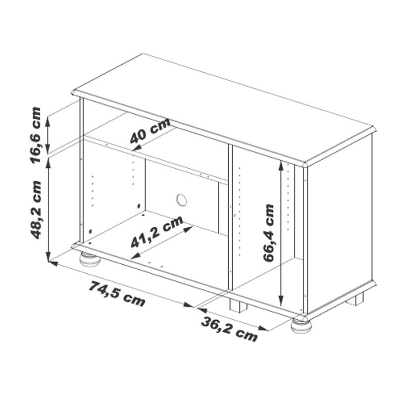 - Niche magnétoscope : Largeur 72 cm x Hauteur 16.5 cm x Profondeur 40 cm
