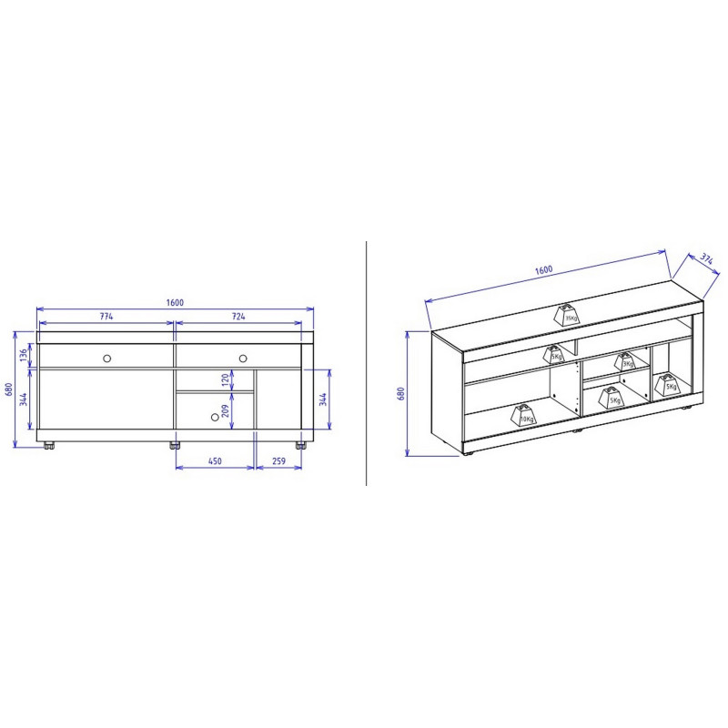 - Plateau TV : Longueur 160 cm Profondeur 37.4 cm