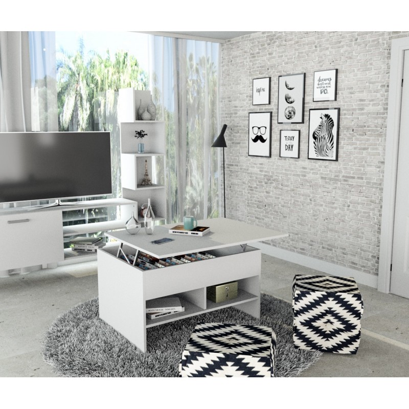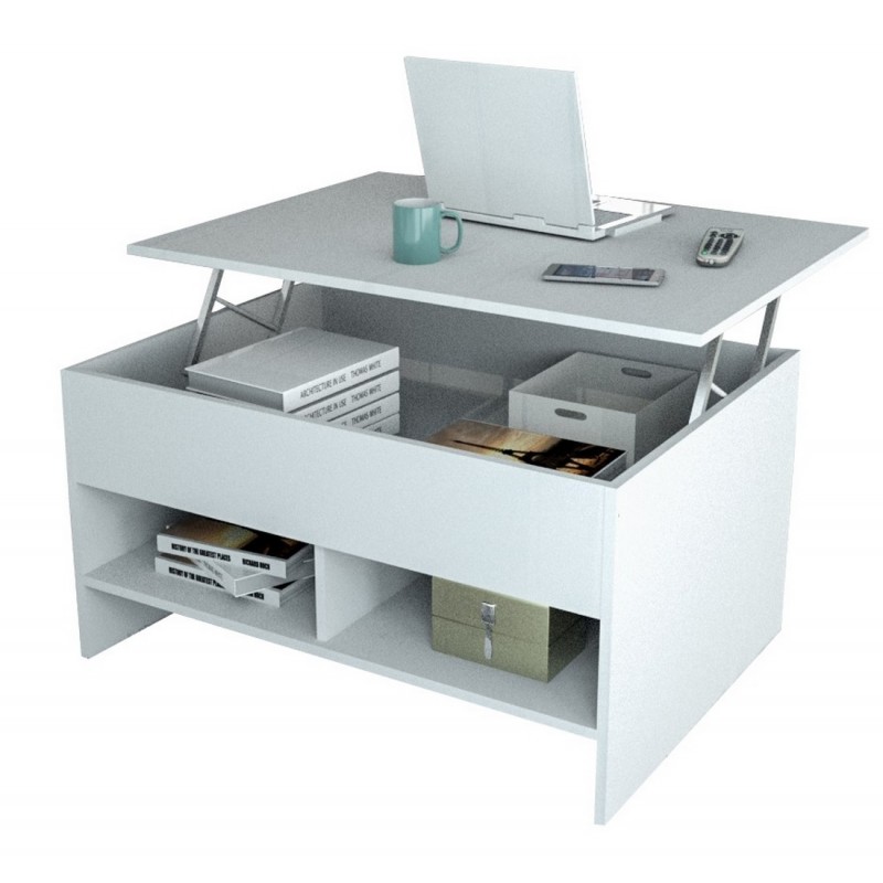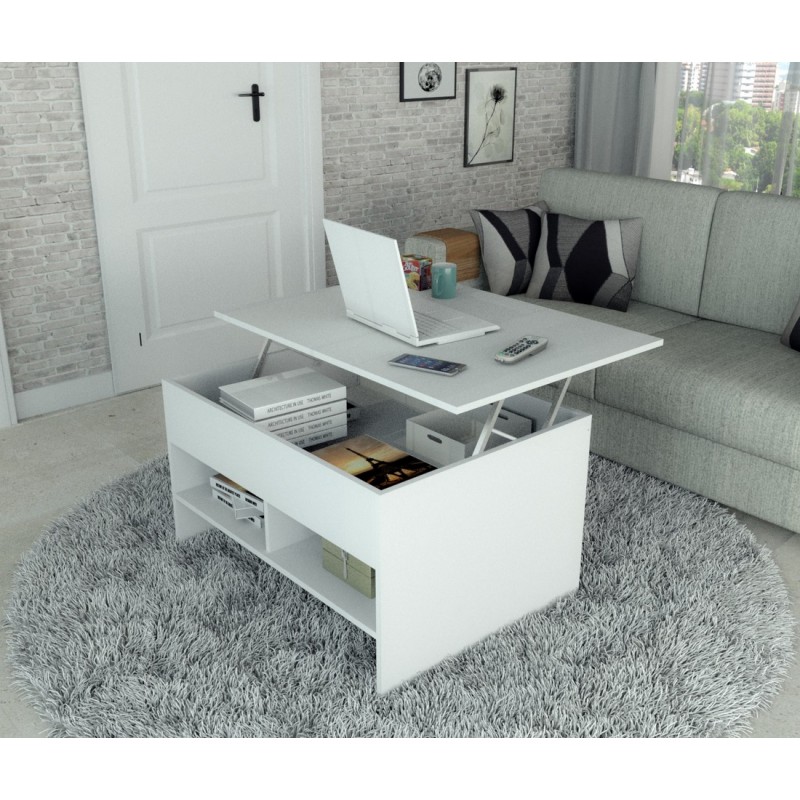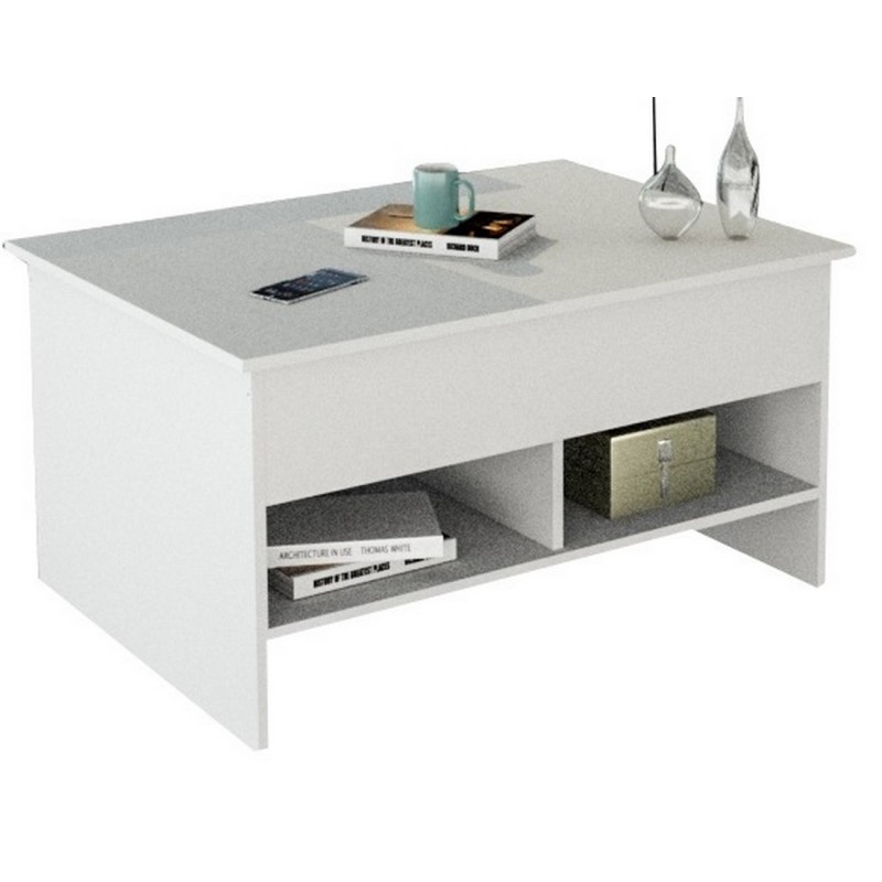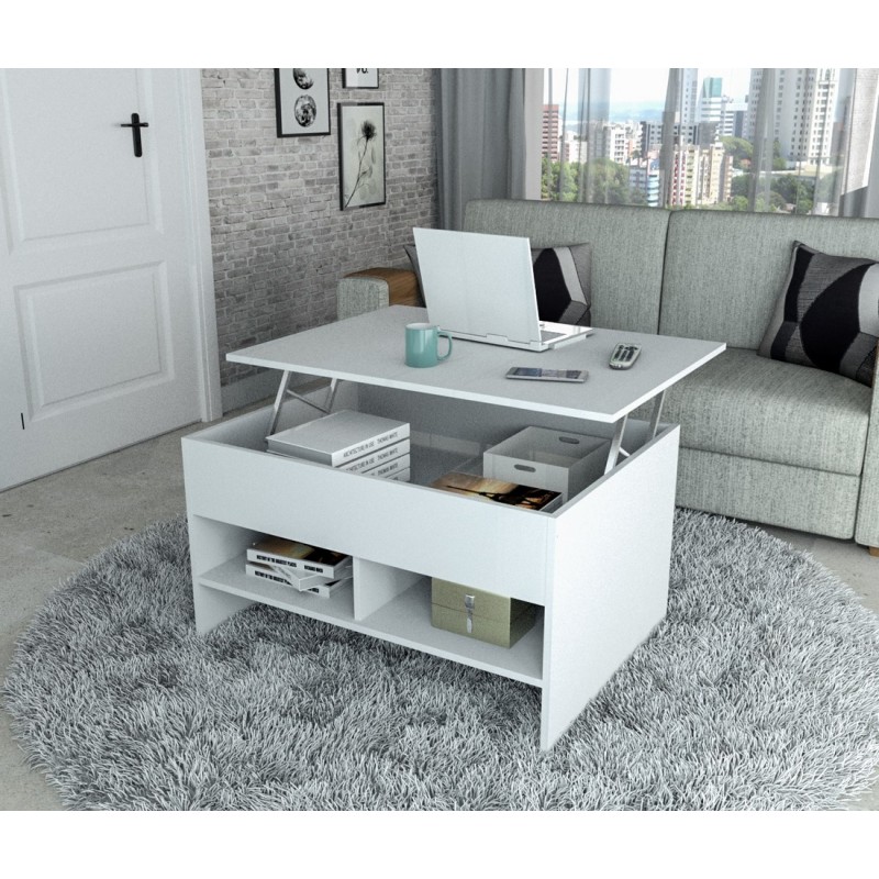Table basse de salon avec Plateau Relevable Blanche.