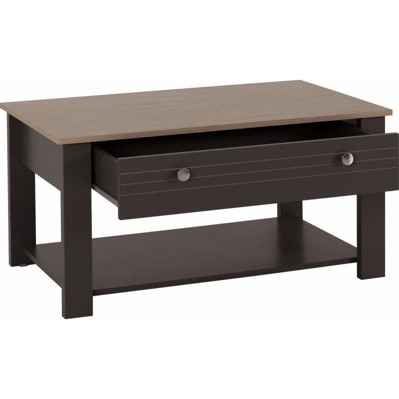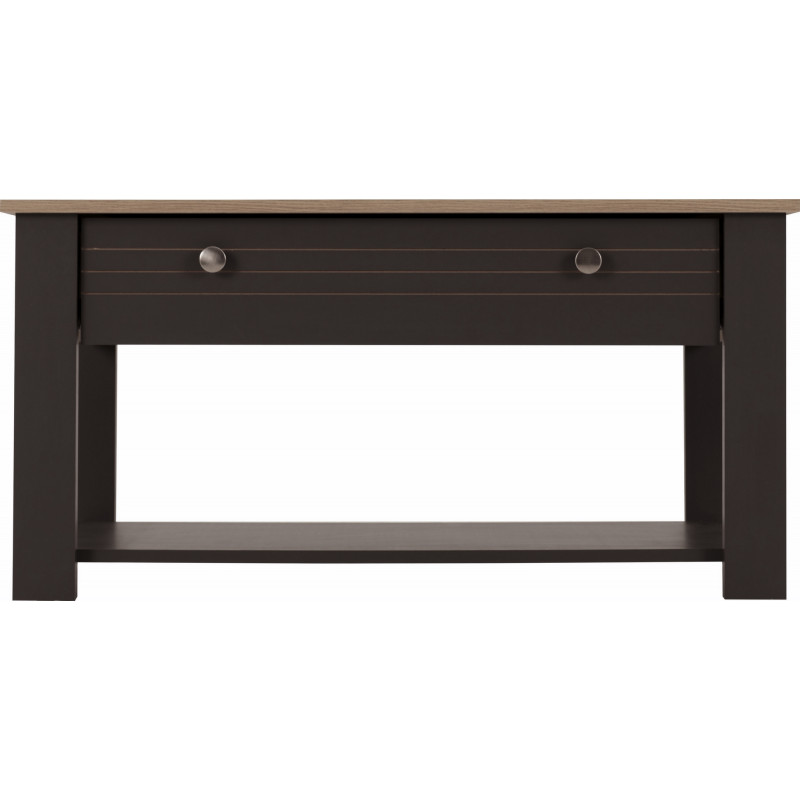 Table Basse Rectangle 1 Tiroir CANADA. 1 Niche Coloris Gris foncé et Imitation Chêne