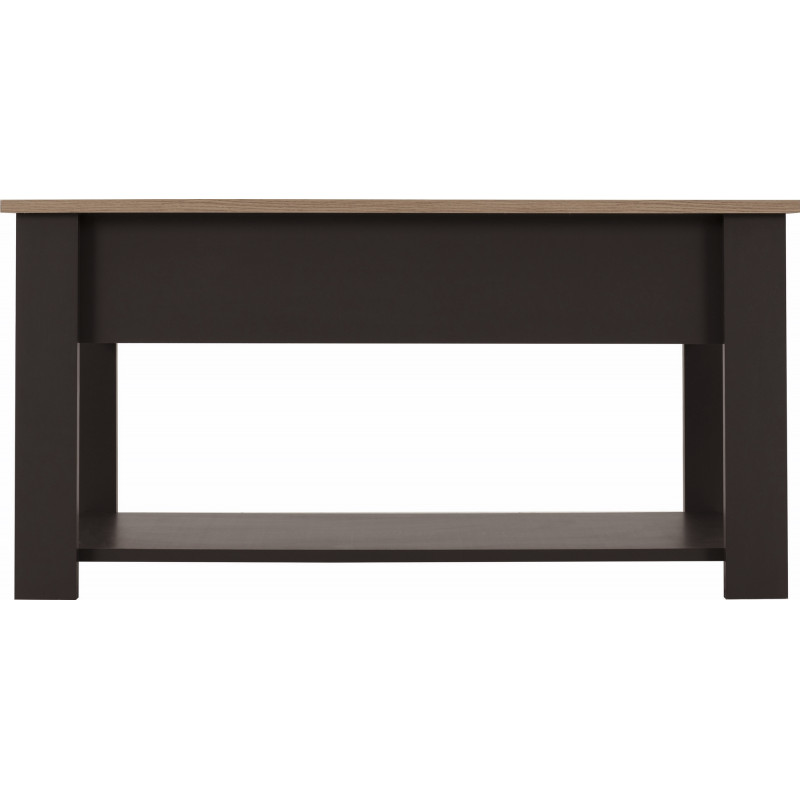 Table Basse Rectangle 1 Tiroir + 1 Niche. CANADA. Coloris Gris foncé + Imitation Chêne. Longueur 103 cm Hauteur 85 cm Profondeur 59.5 cm. Livraison sous une semaine offerte.