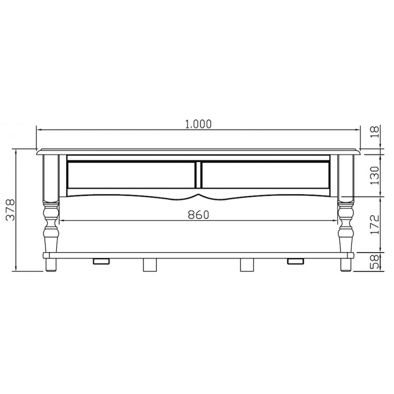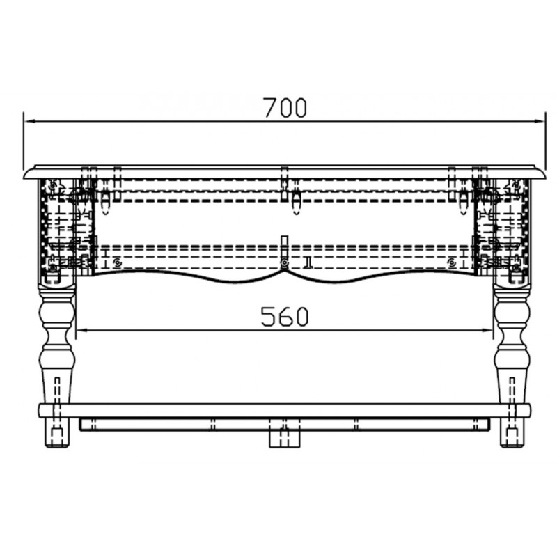 - Niche, entre les pieds : Longueur 86 cm x Hauteur 17.2 cm x Profondeur 56 cm