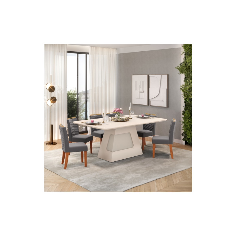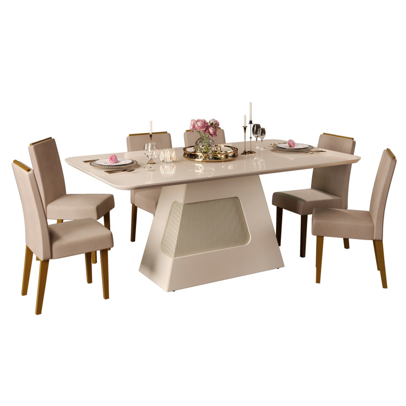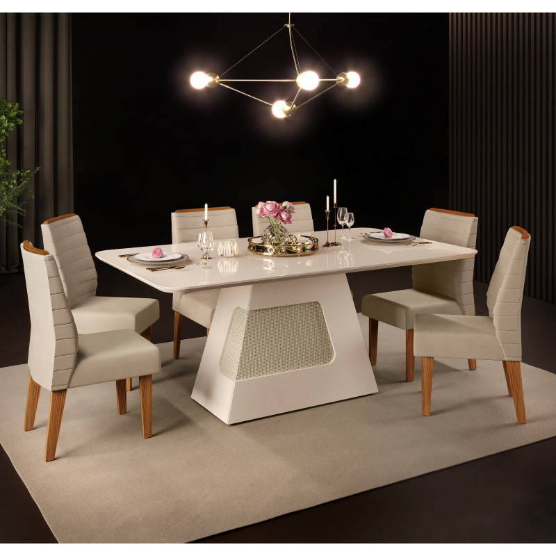 Table de Salle à Manger Rectangle 6 Personnes DALA. Longueur 180 cm x Hauteur 80 cm x Profondeur 90 cm. Coloris Blanc Ecru. Plateau épaisseur 25 mm recouvert d'un verre peint blanc épaisseur 4 mm. Plateau bois biseauté avec angles arrondis. Pied Trapèze avec incorporation de motifs décoratifs. Livraison gratuite sous une semaine.