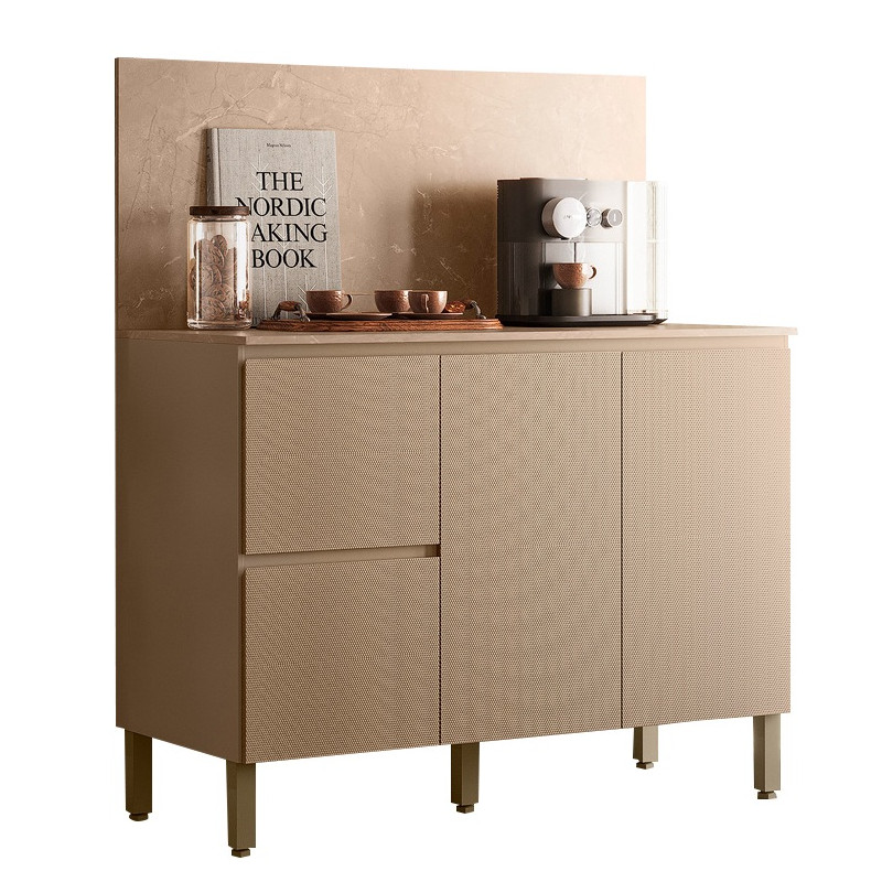 Meuble de Cuisine Bas - Buffet Bas . 3 Portes 2 Tiroirs 3 Niches 1 Tablette. Crédence de protection murale. Coloris : Meuble Taupe Clair, Façade en Relief Gaufré, Dessus et Crédence Imitation Beige Marbré. Longueur 120 cm Hauteur 91.5 cm 142.5 cm avec la crédence Profondeur 53.3 cm. Charnières et coulisses en métal. 5 Pieds Réglables. Livraison gratuite sous une semaine.